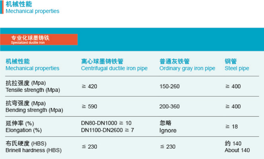 Each ductile iron pipe is subjected to strict on-line inspection. The test items include molten iron composition, metallographic phase, tensile strength, elongation, hardness, dimension, appearance, water pressure, cement lining thickness, zinc spraying thickness and paint spraying thickness to ensure that each product meets the standards.